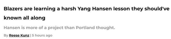 北京时间11月3日,开拓者队记Reese Kunz撰文谈到杨瀚森被下放到发展联盟球队训练一事,他指出,对于开拓者而言,培养杨瀚森的任务比预想的更加艰巨。以下是Kunz的报道——